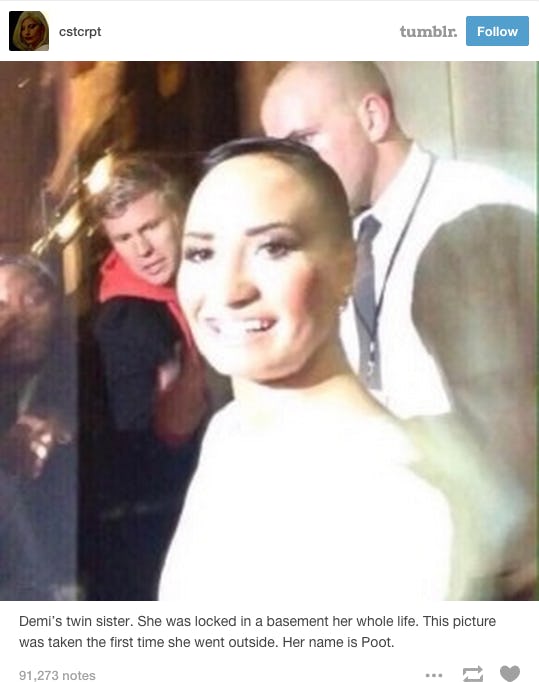 Demi Lovato Tweets Poot Lovato Meme | Teen Vogue from assets.teenvogue.com Here she is looking fierce and fabulous. Demi locked me in the basement cos she felt threatened by me. Hi im poot the better twin. Cstcrpt — who has since deleted their account — wrote in the caption: What on earth will happen next? But poot is very real to the teenagers who turned an unflattering picture of lovato into a strange meme. Demi lovato and her 'sister' poot photograph: Poot lovato is the slightly deranged, utterly ridiculous conspiracy theory that only the internet could dream up.