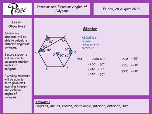 Pentagon Interior And Exterior Angles : Image result for polygon interior angles | Quadrilaterals, Heptagons : Using the same formula, the interior angles of some regular polygons are calculated as follows